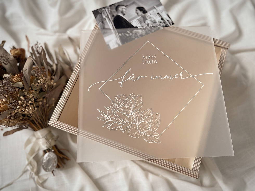 Edelstahl Jausenbox mit Eiche Schneidbrettchen personalisiert